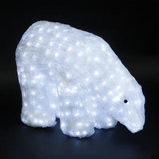Акриловые фигуры за несколько лет вызвали большой интерес у дизайнеров и частных клиентов. С каждым годом расширяется не только ассортимент акриловых фигур, но и появляются новые технологии нанесения акрила. Эти яркие, светящиеся объемные фигуры, состоящие из металлического каркаса, акрила и светодиодов, применяются для оформления и создания новогодней атмосферы в кафе, ресторанах, торговых центрах, магазинах, на площадях и перед входом, а также просто в частных домах и квартирах. Все фигуры укомплектованы понижающим трансформатором , что обеспечивает безопасность при контактировании, а так же имеют степень защиты IP 44, что позволяет использовать их как в помещении, так и на улице. Акриловая светодиодная фигура "Белый медведь 40см" высотой 40 см, светящаяся более 700 ярких диодов, выполнена по специальной технологии нанесения акрила имитируя шерстяной покров реального животного. Она позволит Вам создать ту самую, настоящую новогоднюю атмосферу и принести сотни радостных улыбок.