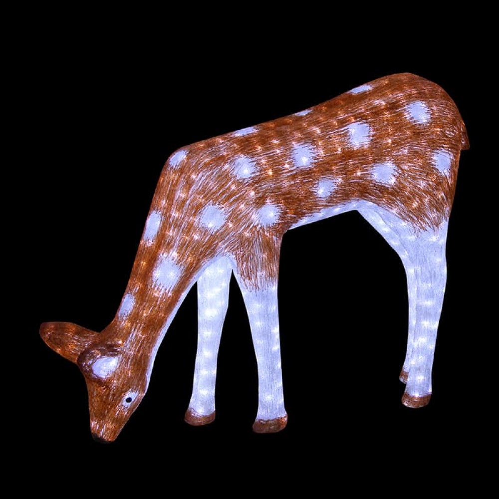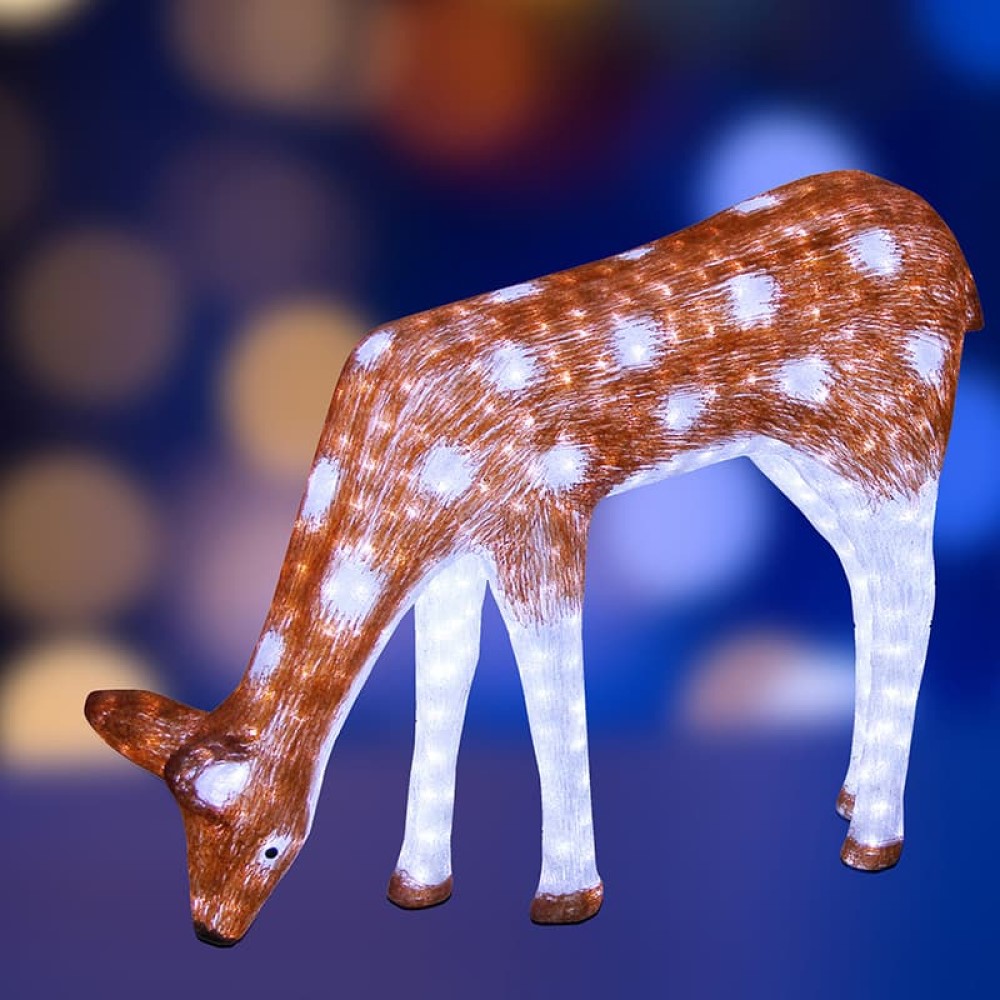 Акриловые фигуры за несколько лет вызвали большой интерес у дизайнеров и частных клиентов. С каждым годом расширяется не только ассортимент акриловых фигур, но и появляются новые технологии нанесения акрила. Эти яркие, светящиеся объемные фигуры, состоящие из металлического каркаса, акрила и светодиодов, применяются для оформления и создания новогодней атмосферы в кафе, ресторанах, торговых центрах, магазинах, на площадях и перед входом, а также просто в частных домах и квартирах. Все фигуры укомплектованы понижающим трансформатором , что обеспечивает безопасность при контактировании, а так же имеют степень защиты IP 44, что позволяет использовать их как в помещении, так и на улице. Акриловая светодиодная фигура "Олень мама коричневая" высотой 100 см, светящаяся более чем 2850 ярких диодов, выполнена по специальной технологии нанесения акрила имитируя шерстяной покров реального животного. Новинка этого сезона позволит Вам создать ту самую, настоящую новогоднюю атмосферу и принести сотни радостных улыбок.