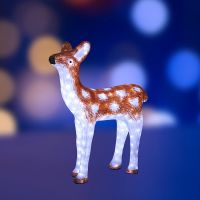 Акриловые фигуры за несколько лет вызвали большой интерес у дизайнеров и частных клиентов. С каждым годом расширяется не только ассортимент акриловых фигур, но и появляются новые технологии нанесения акрила. Эти яркие, светящиеся объемные фигуры, состоящие из металлического каркаса, акрила и светодиодов, применяются для оформления и создания новогодней атмосферы в кафе, ресторанах, торговых центрах, магазинах, на площадях и перед входом, а также просто в частных домах и квартирах. Все фигуры укомплектованы понижающим трансформатором , что обеспечивает безопасность при контактировании, а так же имеют степень защиты IP 44, что позволяет использовать их как в помещении, так и на улице. Акриловая светодиодная фигура "Олененок коричневый" высотой 81 см, светящаяся более чем 880 ярких диодов, выполнена по специальной технологии нанесения акрила имитируя шерстяной покров реального животного. Новинка этого сезона позволит Вам создать ту самую, настоящую новогоднюю атмосферу и принести сотни радостных улыбок.