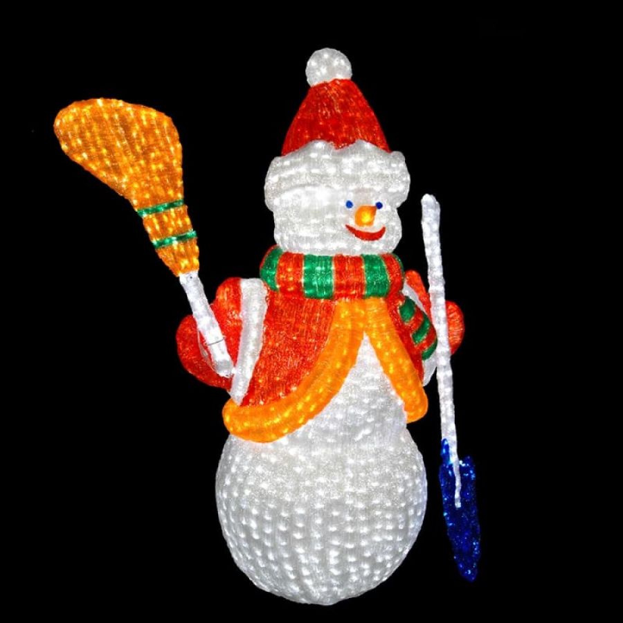 Акриловая светодиодная фигура "Снеговик с лопатой и метлой 160см" высотой 160 см, светящаяся более чем 3000 ярких диодов, выполнена по специальной технологии нанесения акрила. Она позволит Вам создать ту самую, настоящую новогоднюю атмосферу и принести сотни радостных улыбок.