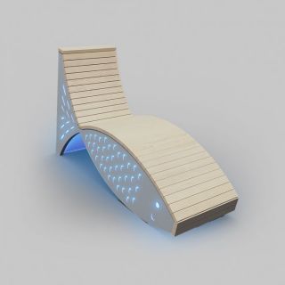 Интерьерные шезлонги "Рыбка" для общественных мест, выполненные в виде стилизованных стилизованных ныряющих рыб, предназначены для общественных мест. В хвостовой части расположен световой короб, для возможности размещения информационных материалов. Внутренняя подсветка шезлонга подчёркивает "рыбью" чешую и освещает объект снизу.