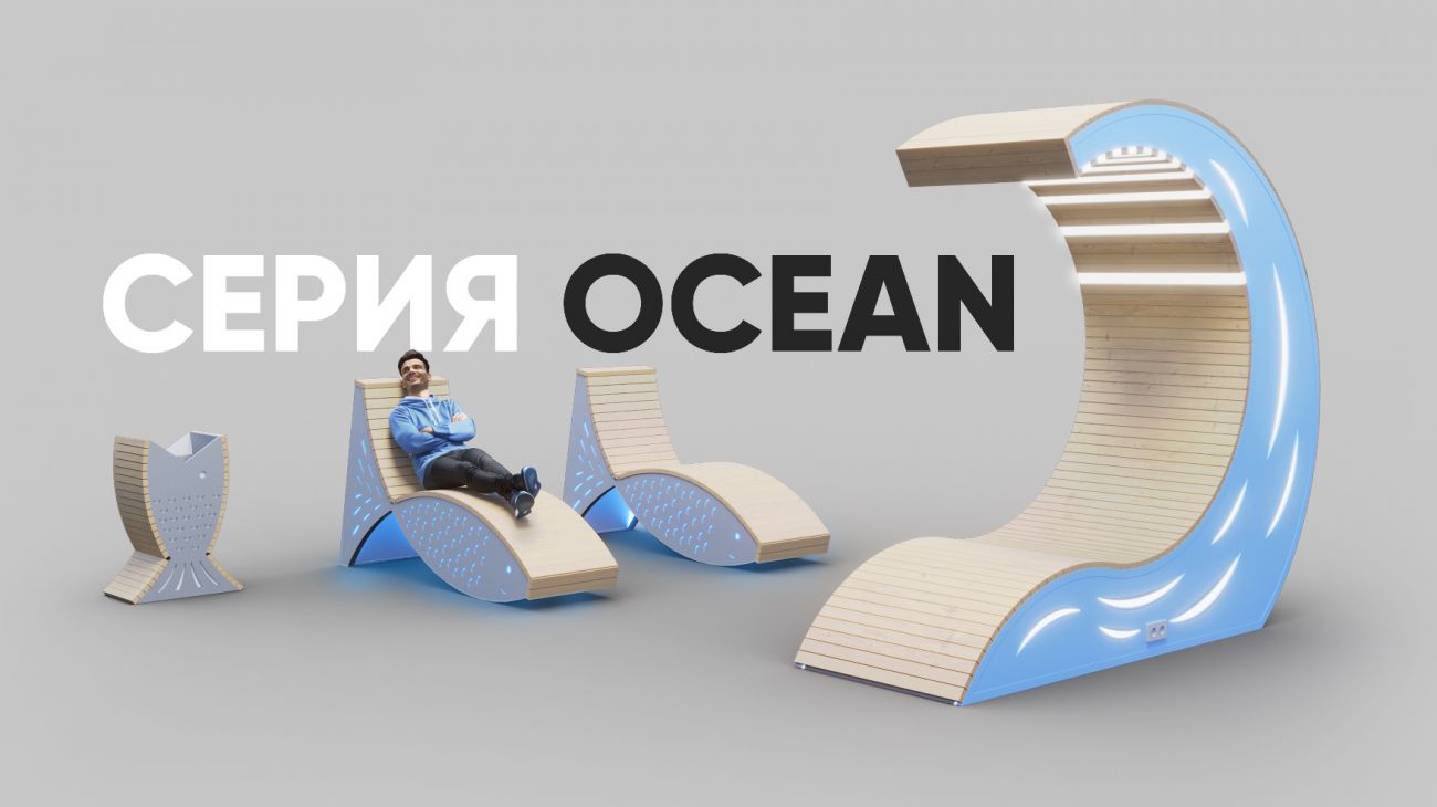Серия "Ocean" предлагает разнообразные предметы для общественного пространства, выполненные в морской тематике.