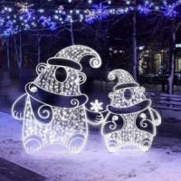 Серия «сказочных» световых объектов отличается волшебной тематикой и ажурными декоративными завитками. Эти изделия, воплощающие традиционные новогодние мотивы, создают атмосферу настоящей сказки, наполняя город светом и магией Нового года.