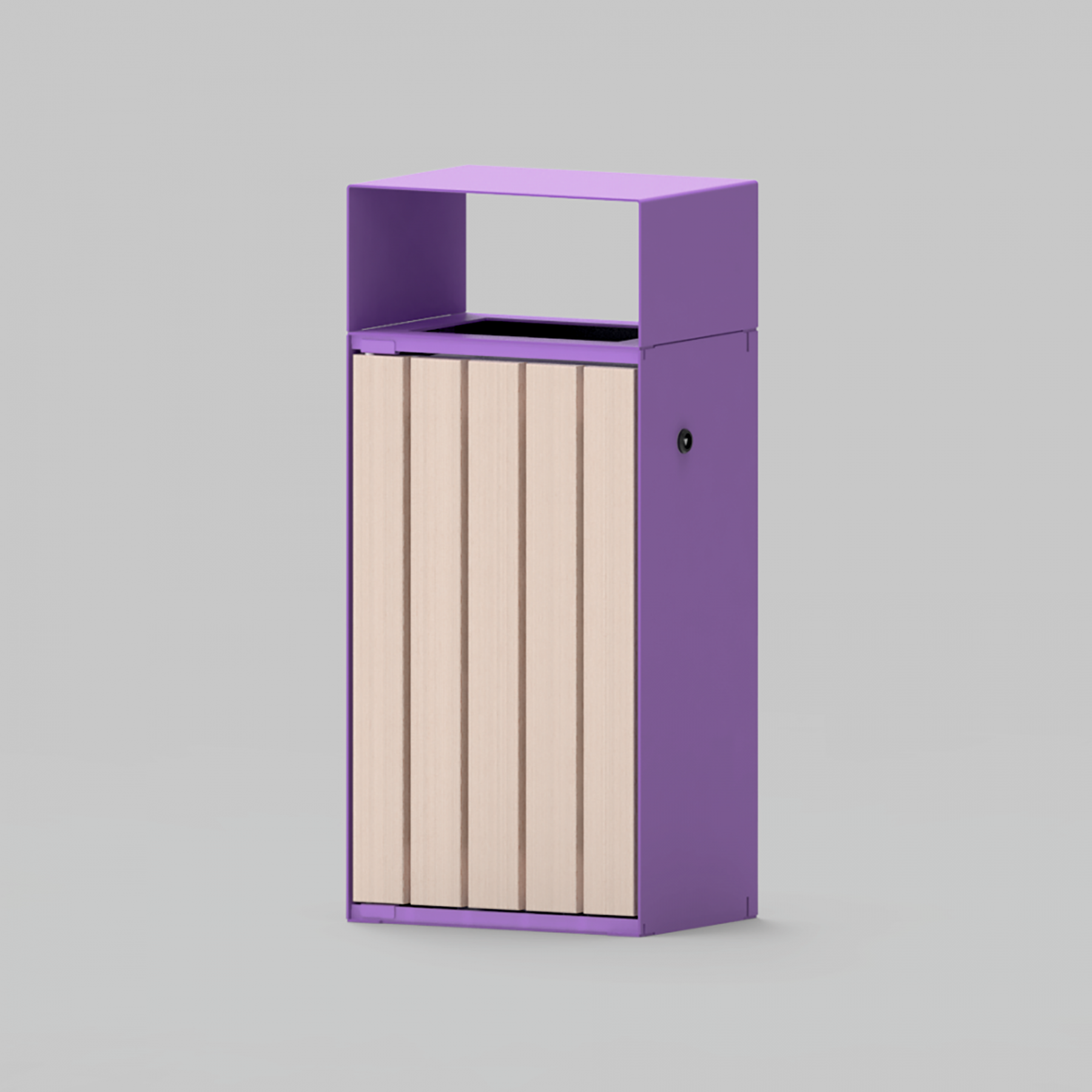 Закрытая от осадков урна с дверцей, закрывающейся на замок. Лаконичный дизайн сочетается с удобством