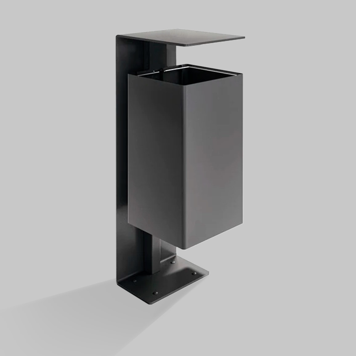 Минималистичная и функциональная металлическая урна. Во внутреннюю часть урны, для удобства обслуживания, помещен съёмный оцинкованный вкладыш.